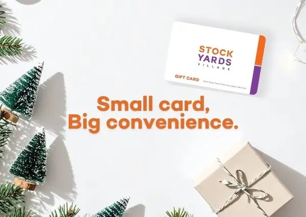 Gift smarter with Stock Yards Village Gift Cards – the perfect way of freedom and choice.